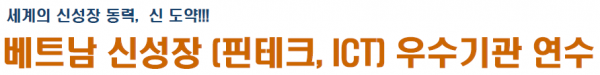 마감 (10월) 베트남 신성장(핀테크, ICT) 우수 기관 연수 기간정보 정보 기간 23.10.16 ~ 23.10.20 본문 0. 주요 내용 - 중국의 대체재가 아닌 세계 신성장동력의 베트남 산업 - 2,3차산업을 건너뛰고 성장하는 4차산업혁명 - 신 고용서비스와 성장동력 확보0. 연수 일정: 2023년 10월 16일(월)- 10월 20일(금)/ 3박 5일0. 연수 지역: 베트남 하노이 지역< 연수문의 : 본원 해외연수팀> TEL: 02-867-4841 Mail:kmkgmg@hanmail.net <상세 내용은 아래 첨부화일을 다운 받으시길 바랍니다> ↓↓↓↓↓↓↓↓↓↓↓↓↓↓ 첨부파일 베트남신성장연수2310.pdf (1.6M) 1013회 다운로드 | DATE : 2023-08-14 18:38:17 참가신청 (10월) 베트남 신성장(핀테크, ICT) 우수 기관 연수 2025년 12월 15일 정보통신망법 규정에 따라 신청하시는 분께 수집하는 개인정보의 항목, 개인정보의 수집 및 이용목적, 개인정보의 보유 및 이용기간을 안내 드리오니 자세히 읽은 후 동의하여 주시기 바랍니다. 가. 수집하는 개인정보의 항목 첫째, 회사는 원활한 고객상담, 각종 서비스의 제공을 위해 아래와 같은 최소한의 개인정보를 필수항목으로 수집하고 있습니다. - 이름, 연락처(메일주소 또는 휴대전화 번호) 둘째, 서비스 이용과정이나 사업처리 과정에서 아래와 같은 정보들이 자동으로 생성되어 수집될 수 있습니다. - IP Address, 쿠키, 방문 일시, 서비스 이용 기록, 불량 이용 기록 셋째, 부가 서비스 및 맞춤식 서비스 이용 또는 이벤트 응모 과정에서 해당 서비스의 이용자에 한해서만 개인정보 추가 수집이 발생할 수 있으며, 이러한 경우 별도의 동의를 받습니다. 나. 개인정보 수집방법 회사는 다음과 같은 방법으로 개인정보를 수집합니다. - 홈페이지, 상담 게시판, 이메일, 이벤트 응모 - 협력회사로부터의 제공 - 생성정보 수집 툴을 통한 수집 개인정보의 수집 및 이용 목적 가. 서비스 제공에 관한 계약 이행 및 서비스 제공 나. 회원관리 회원제 서비스 제공, 개인식별, 이용약관 위반 회원에 대한 이용제한 조치, 서비스의 원활한 운영에 지장을 미치는 행위 및 서비스 부정이용 행위 제재, 가입의사 확인, 가입 및 가입횟수 제한, 분쟁 조정을 위한 기록보존, 불만처리 등 민원처리, 고지사항 전달, 회원탈퇴의사의 확인. 신규 서비스 개발 및 마케팅•광고에의 활용 신규 서비스 개발 및 맞춤 서비스 제공, 통계학적 특성에 따른 서비스 제공 및 광고 게재, 서비스의 유효성 확인, 이벤트 정보 및 참여기회 제공, 광고성 정보 제공, 접속빈도 파악, 회원의 서비스 이용에 대한 통계 개인정보의 보유 및 이용기간 이용자의 개인정보는 원칙적으로 개인정보의 수집 및 이용목적이 달성되면 지체 없이 파기합니다. 단, 다음의 정보에 대해서는 아래의 이유로 명시한 기간 동안 보존합니다. 가. 회사 내부 방침에 의한 정보보유 사유 - 부정이용기록 보존 이유 : 부정 이용 방지 보존 기간 : 1년 나. 관련법령에 의한 정보보유 사유 상법, 전자상거래 등에서의 소비자보호에 관한 법률 등 관계법령의 규정에 의하여 보존할 필요가 있는 경우 회사는 관계법령에서 정한 일정한 기간 동안 회원정보를 보관합니다. 이 경우 회사는 보관하는 정보를 그 보관의 목적으로만 이용하며 보존기간은 아래와 같습니다. - 계약 또는 청약철회 등에 관한 기록 보존 이유 : 전자상거래 등에서의 소비자보호에 관한 법률 보존 기간 : 5년 - 대금결제 및 재화 등의 공급에 관한 기록 보존 이유 : 전자상거래 등에서의 소비자보호에 관한 법률 보존 기간 : 5년 - 전자금융 거래에 관한 기록 보존 이유 : 전자금융거래법 보존 기간 : 5년 - 소비자의 불만 또는 분쟁처리에 관한 기록 보존 이유 : 전자상거래 등에서의 소비자보호에 관한 법률 보존 기간 : 3년 - 웹사이트 방문기록 보존 이유 : 통신비밀보호법 보존 기간 : 3개월 위 '개인정보 수집안내' 에 동의합니다. 담당자 정보 기관(기업)명 - 한글 기관(기업)명 - 영문 성명 전화 부서 휴대폰 직위 E-mail 참가자 1 정보 여권상 성명과 일치해야 합니다. 부서 성명 - 한글 직위 성명 - 영문 휴대폰 성별 남자 여자 E-mail 숙박조건 2인 1실 1인 1실 기본은 2인 1실이며, 1인 1실 신청시 추가 비용이 발생됩니다. 참가자 2 정보 여권상 성명과 일치해야 합니다. 부서 성명 - 한글 직위 성명 - 영문 휴대폰 성별 남자 여자 E-mail 숙박조건 2인 1실 1인 1실 신청하기 이전글 목록으로 다음글